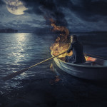 When I had finished the first image I stopped and just stared the man rowing the burning boat. That could be me! Or anyone else. Someone’s burning boat could be his company, friendship or marriage. For me it was the return to my old hometown after a turbocharged year in the UK. I felt that I had changed so much during that year but the problems I had here in Finland were still here and even stronger. Fighting the ghosts of the past and lightless autumn dragged me under the dark waters, too. But like the “branded man”, I started to feel that I will make it to the shore.