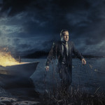 Toni´s original idea for the picture was a literal approach of picturing a burning oil rig and a man saving himself from the platform. But I wanted to find simpler and stronger approach for visualizing the story. I decided to create a series of images where a man is rowing a burning row boat, alone. Just as the flames start to catch the man, he sees the shore. Man jumps into the water and struggles his way to the dry land, leaving the painful memories behind him. He sees now that he is not a desperate outcast anymore, but he is reborn from all the pain the flames, ice cold water and darkness caused him. Life goes on… and he is writing the new chapters.
