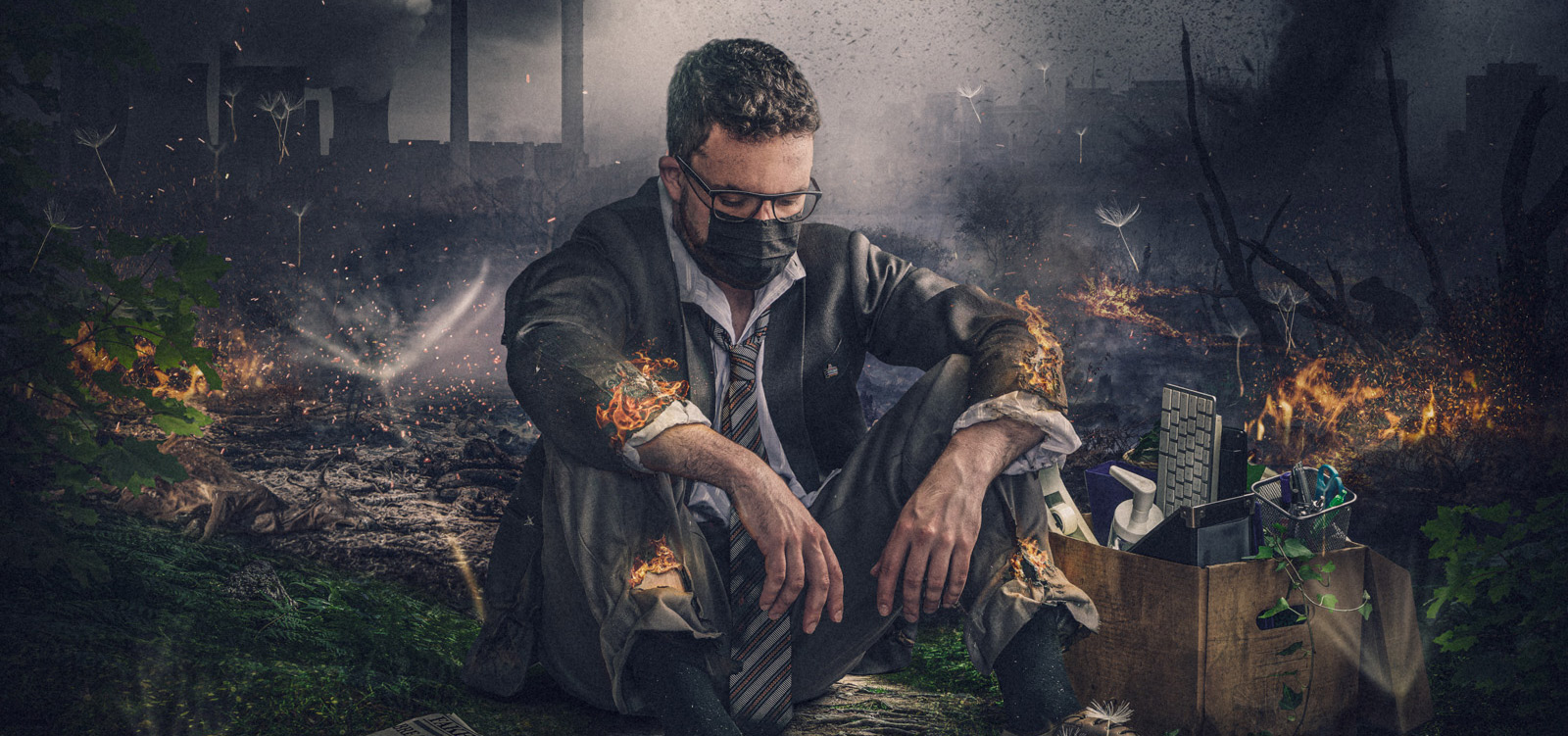 August 2020 found me in a serious need of an outlet for the thoughts occupying my mind, and for me, the best outlet is to create an image. I started with the idea you may have seen in some cartoons already: an image about the COVID pandemic as an immediate threat, which is actually dwarfed by the looming recession and natural disasters brought by climate change. By no means should COVID be downplayed, but the bickering about facemasks should not blind us from seeing the real threat behind pandemics and falling economies: the accelerating increase in global temperatures. This in mind I sketched out an image, trying to bring out the sadness, unfairness, and doomsday feeling of 2020 but leaving in some glimmers of hope for a better tomorrow.