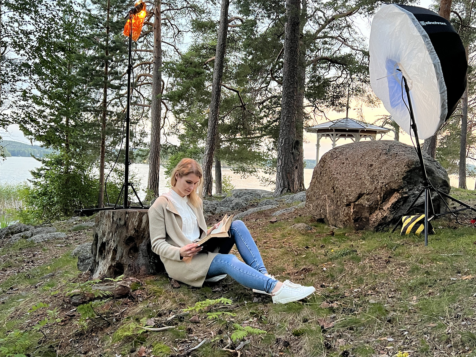 Earlier on, I had purchased a battery-powered light bulb, which I positioned within the hand’s grasp. It took some hours to perfect the evening lighting and shoot all the needed elements of the backplate image, after which I set about preparing the backdrop for the final image. Naturally, the central figure, the woman, needed to be integrated. To this end, I reached out to Taina Törmänen, whom I had long aspired to collaborate with.